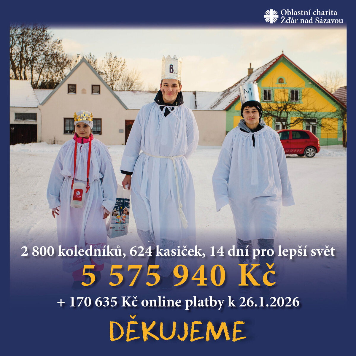 Tříkrálová sbírka, největší dobrovolnická kampaň v republice, spojující lidi napříč městy a obcemi, přinášela opět radost a milá setkání. Požehnat domovy žďárského okresu vyrazilo více než 2 800 koledníků všech věkových kategorií. Nejmladší královně bylo 16 měsíců a nejstarší, o které víme, 86 let. Obě s dalšími králi vyrážely do ulic bez ohledu na aktuální mrazivé počasí. Možná proto, že i dobrý skutek zahřeje a potěší.